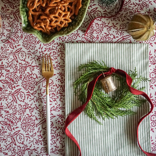 From table linens to napkins, our hand block-printed designs bring warmth and character to your Christmas table — the perfect way to style a festive setting that feels truly unique