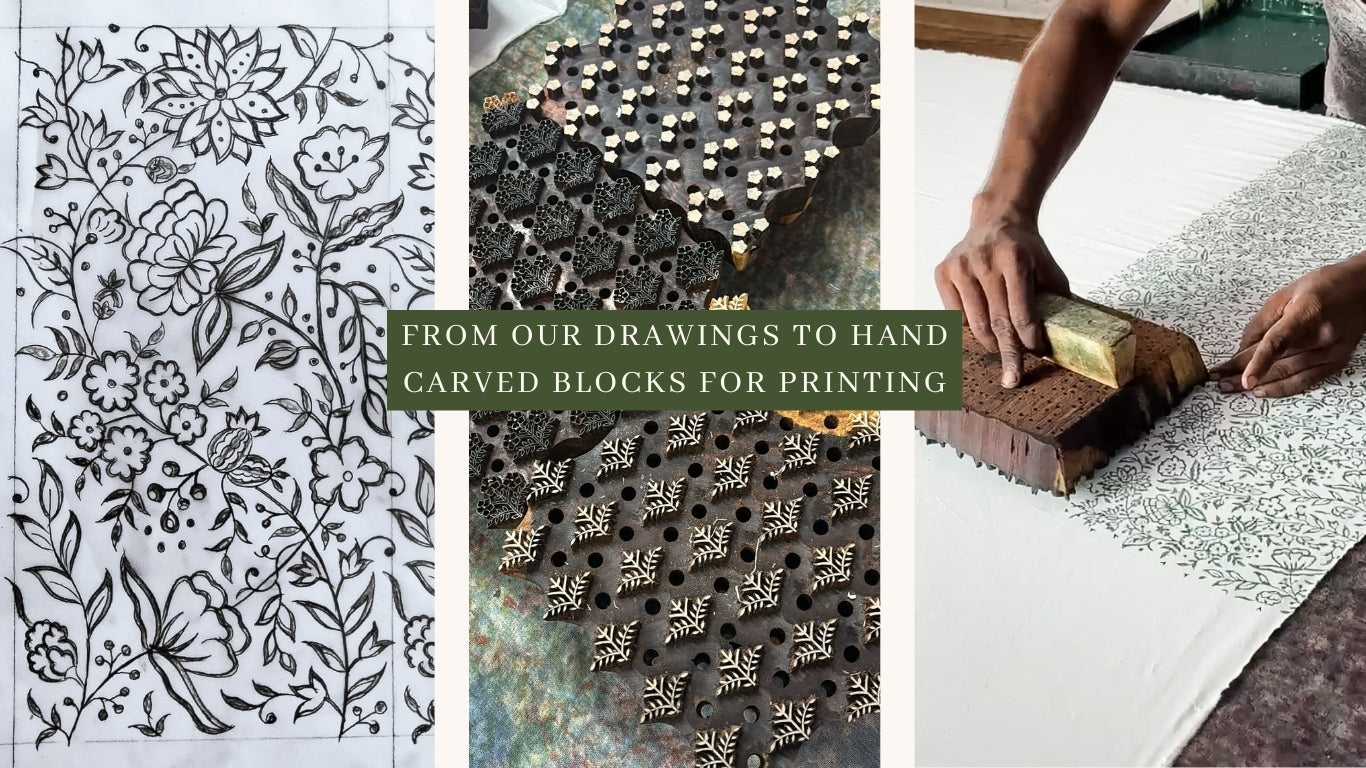 Hand-drawn designs, brought to life through traditional block printing