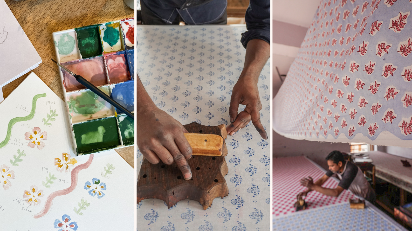 Every Supper House design begins as a hand drawing, then carved into wooden blocks and printed slowly by hand in Jaipur.
