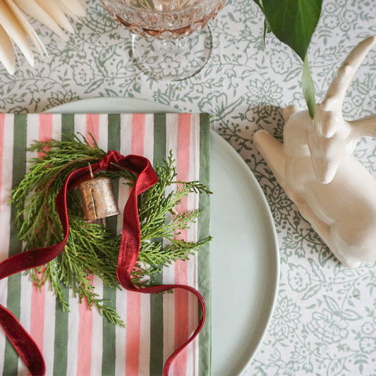 From table linens to napkins, our hand block-printed designs bring a unique, artisan touch to your table this Christmas