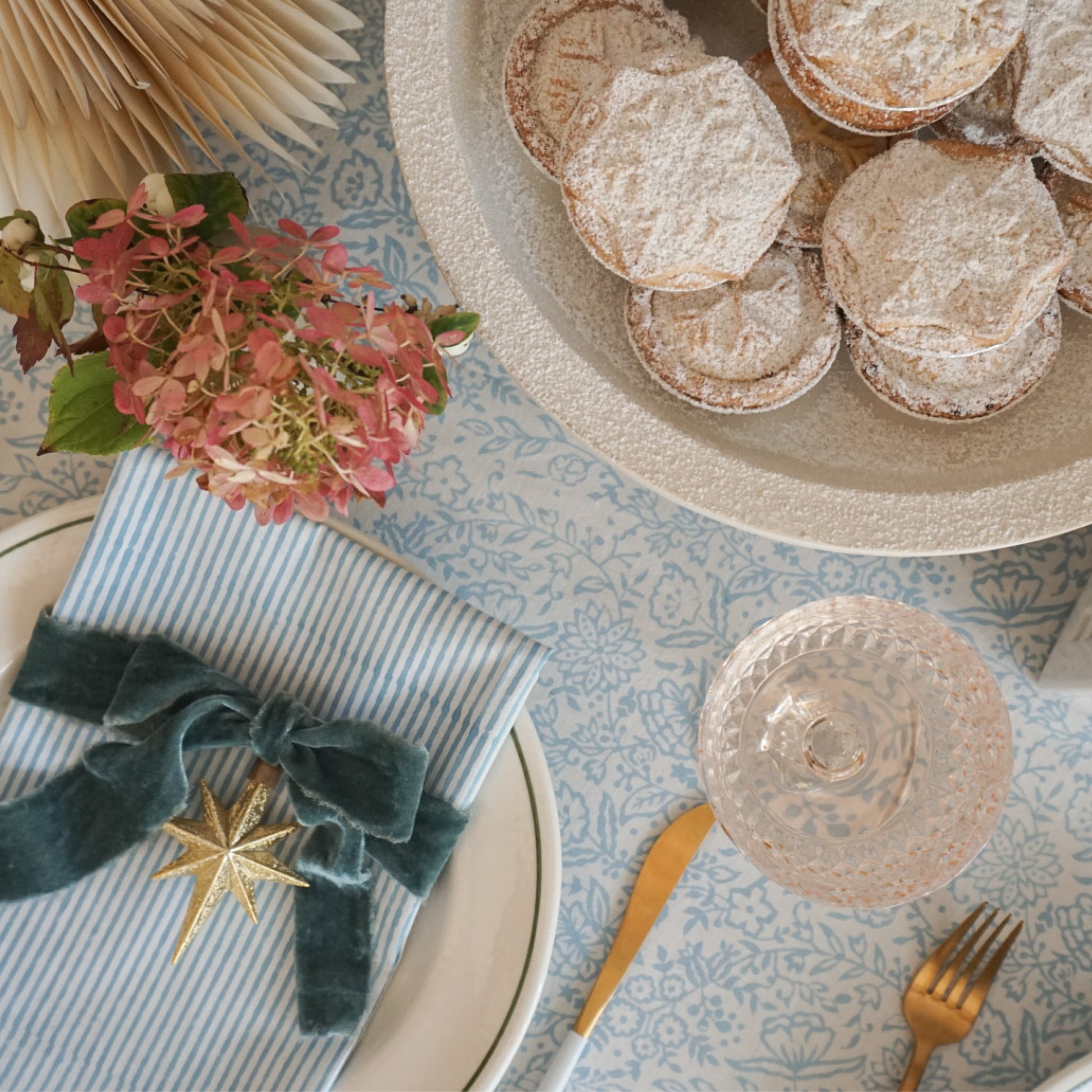 Introducing our brand new ice blue stripe napkins just in time for Christmas table styling. Hand-printed by skilled artisans in Jaipur, using traditional block printing techniques.