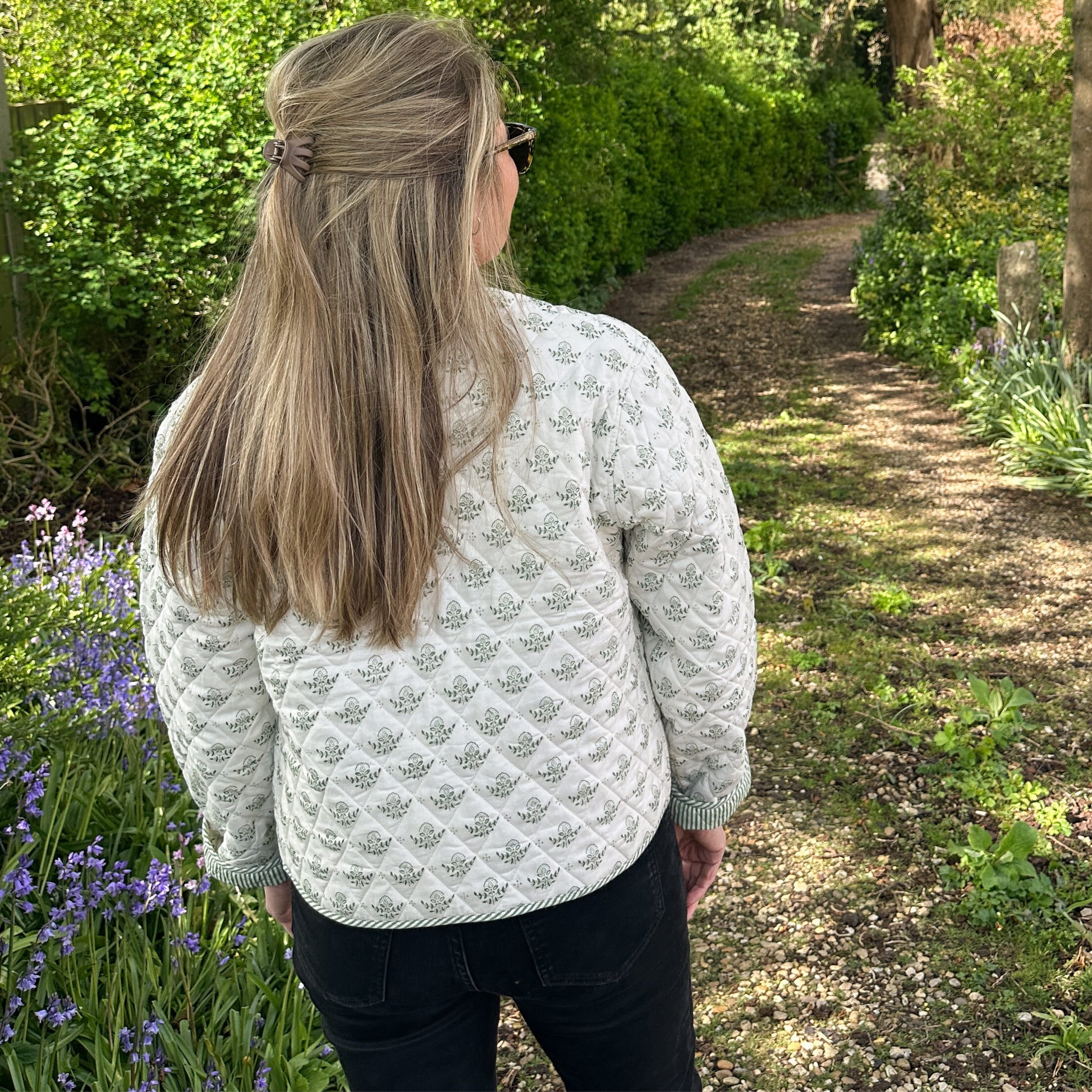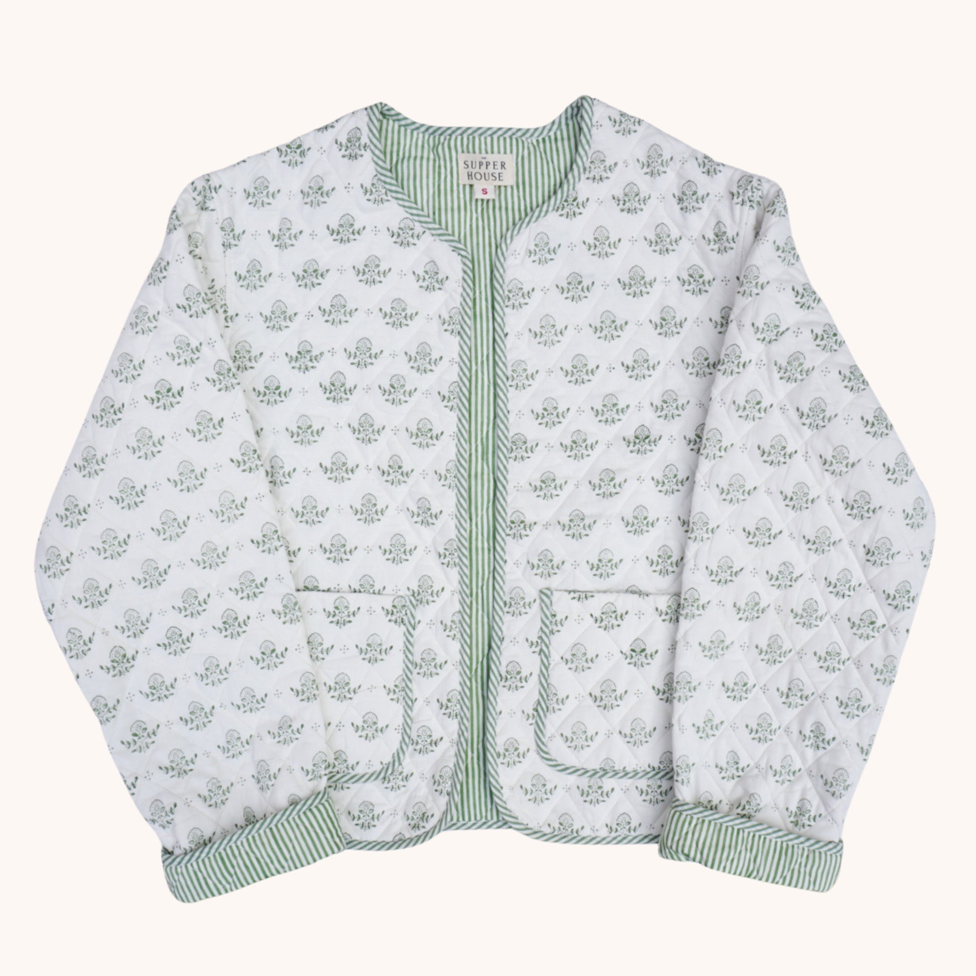 Lightly quilted for ease and structure, it is designed for a relaxed silhouette that layers comfortably over everyday pieces from denim to dresses.