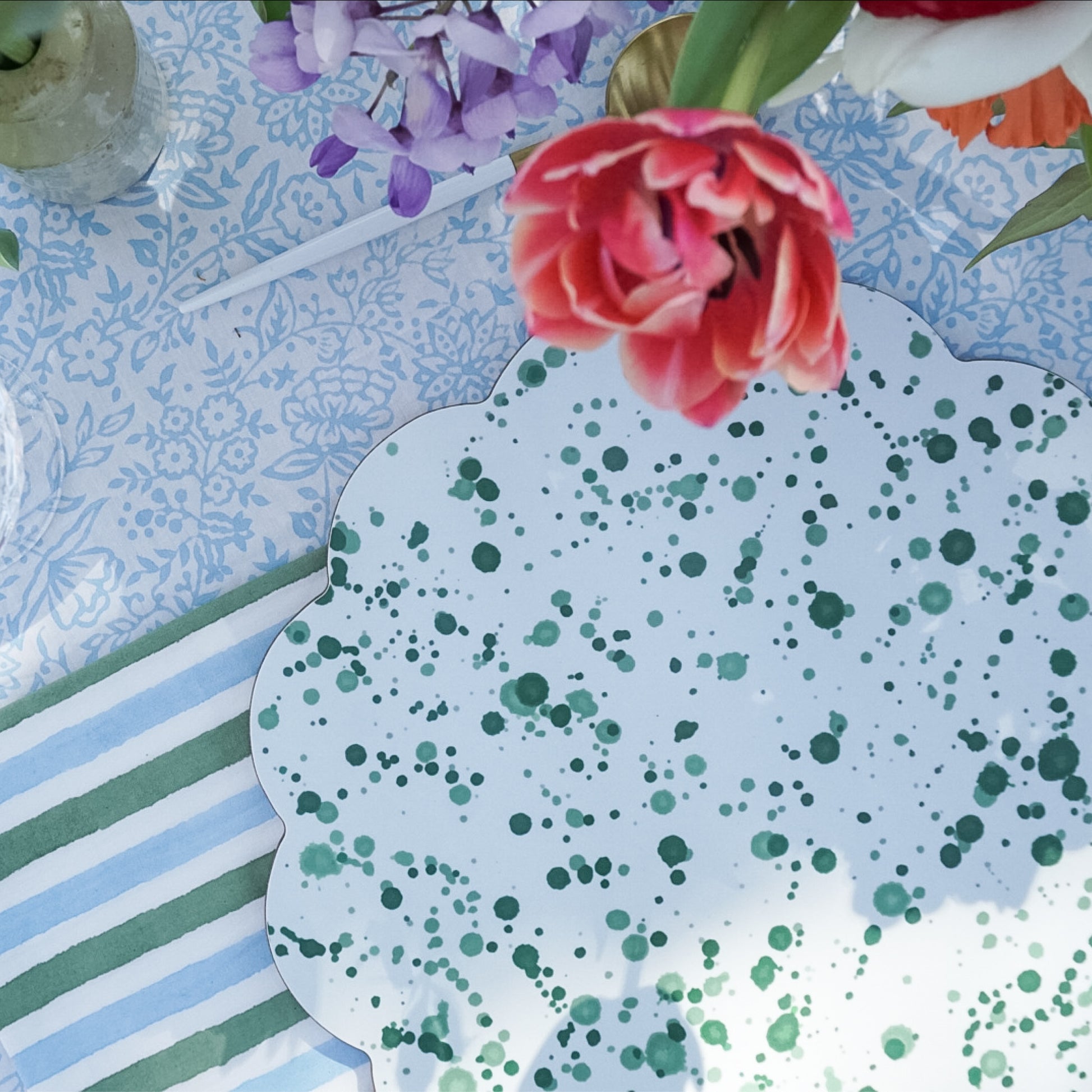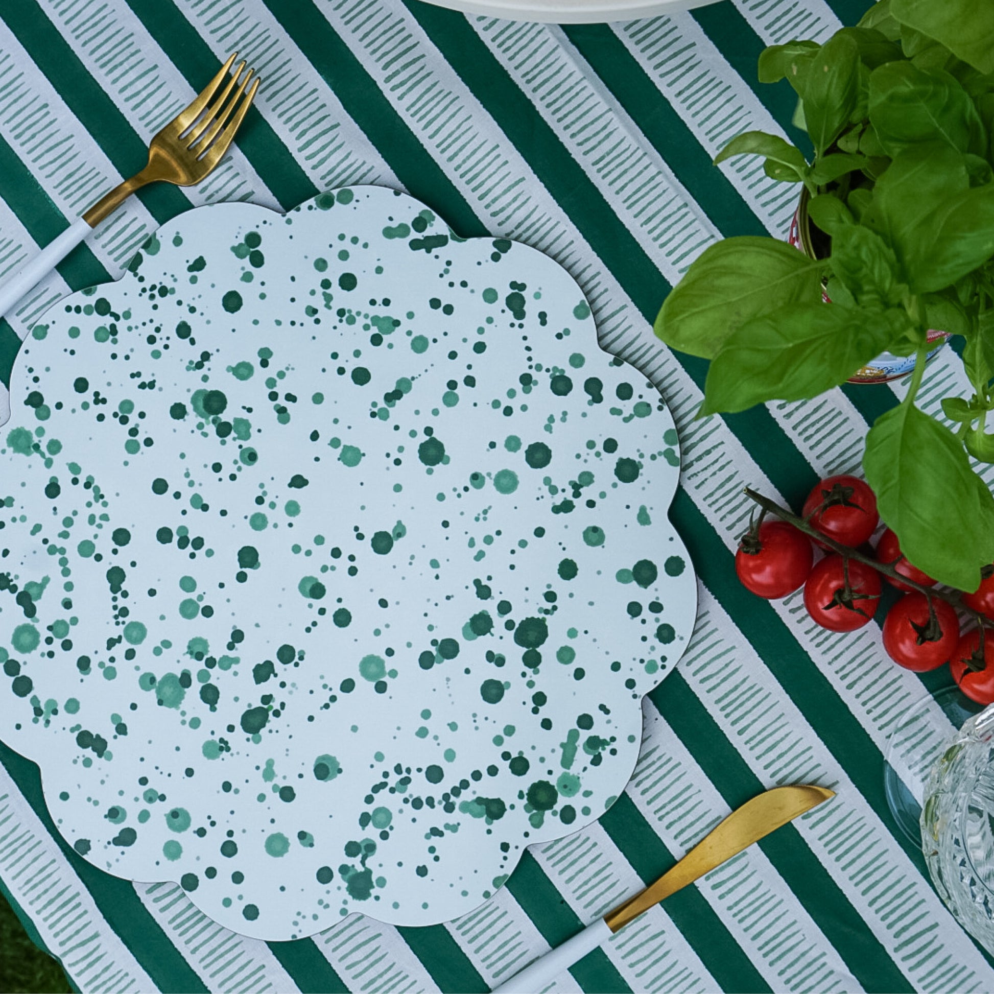 Our new splatter placemats are the perfect solution to elevate every day dining. The timeless green splatter on a green background will take you across all the seasons.