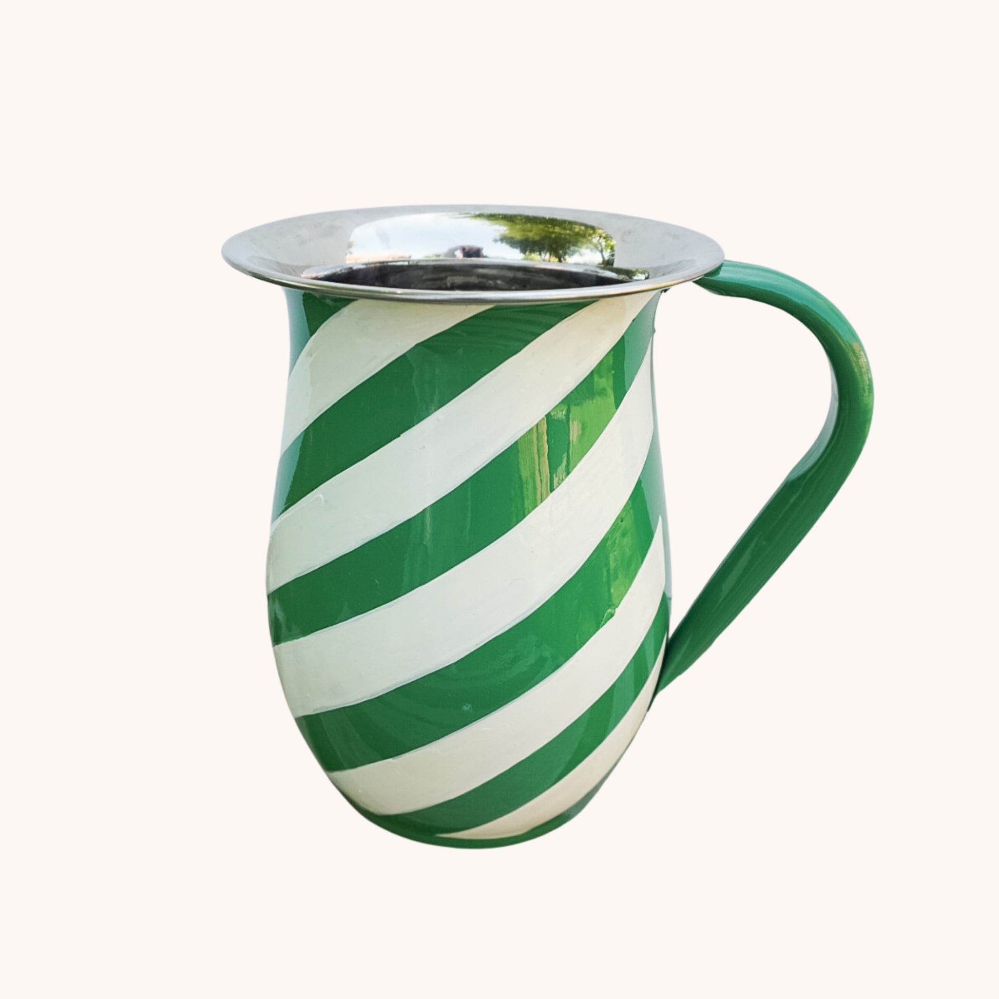 Our new green striped jugs hand-painted by skilled artists in Kashmir.