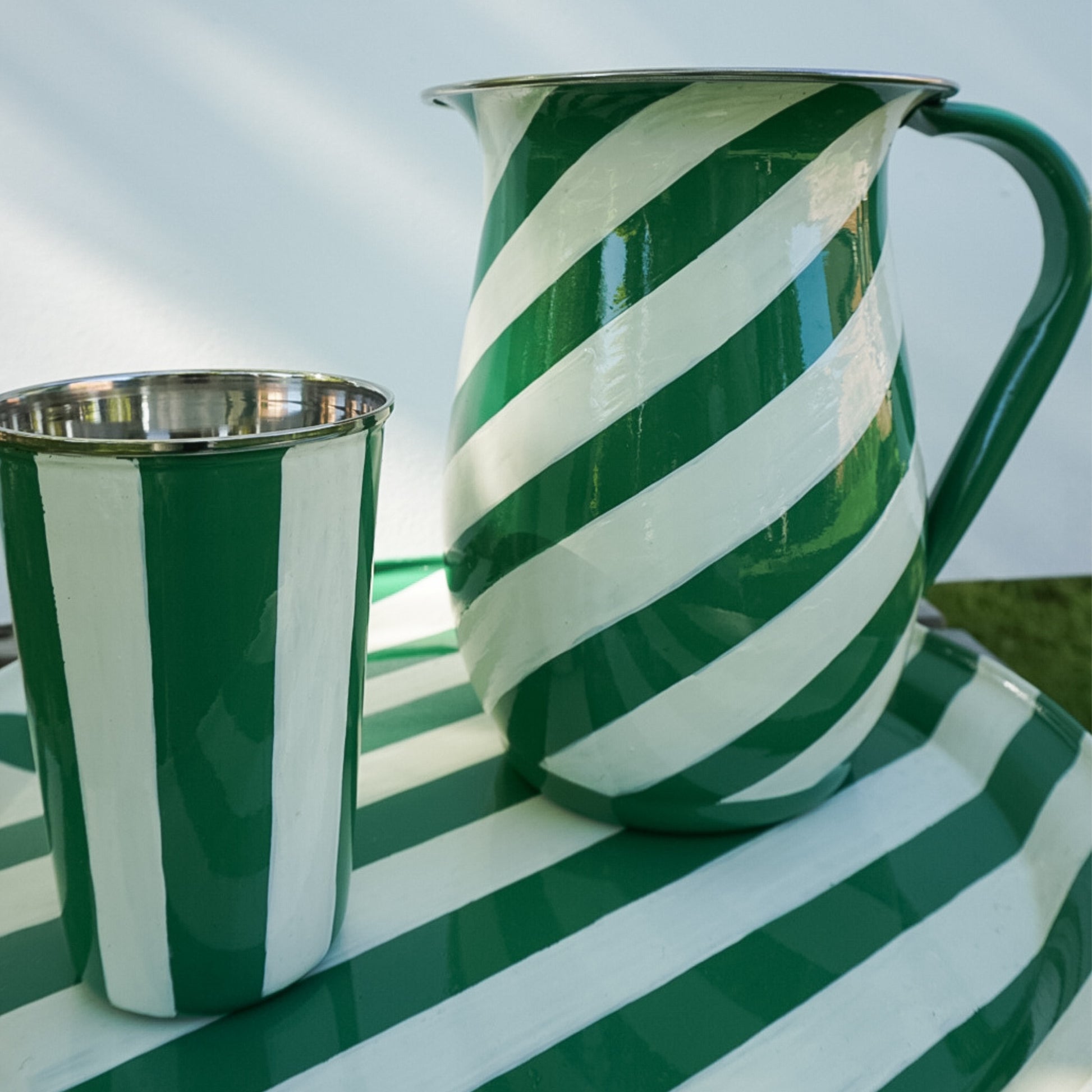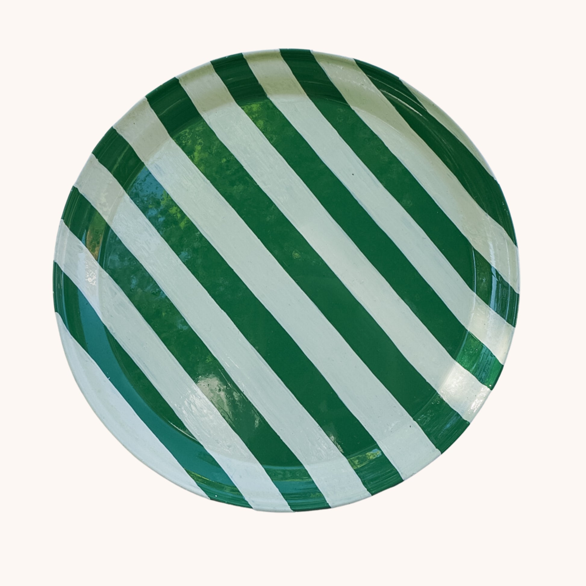 Our new green stripe trays are hand-painted by skilled artists in Kashmir.