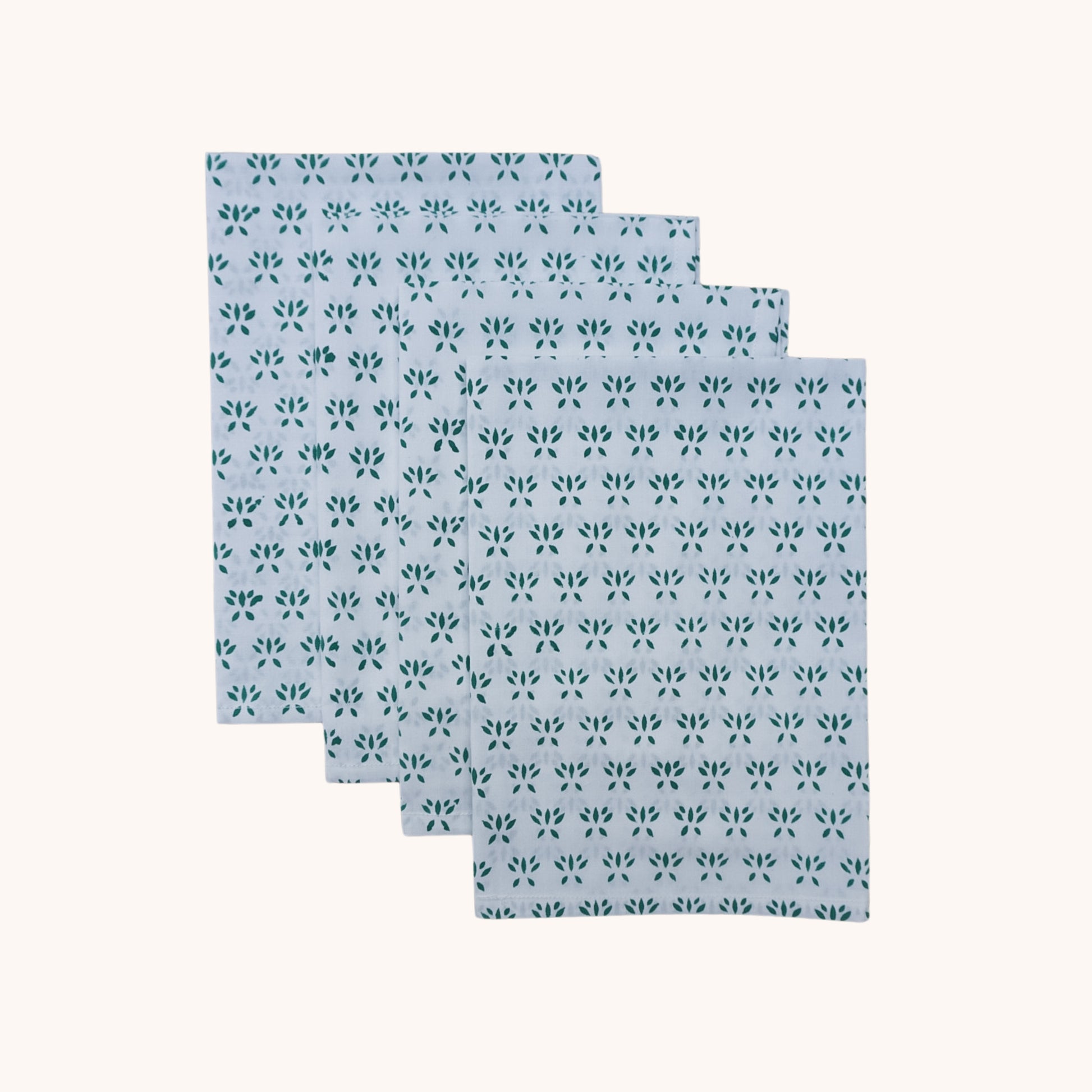 Introducing our Joy Napkins in Emerald Green. Block printed in our unique design by our team in Jaipur.