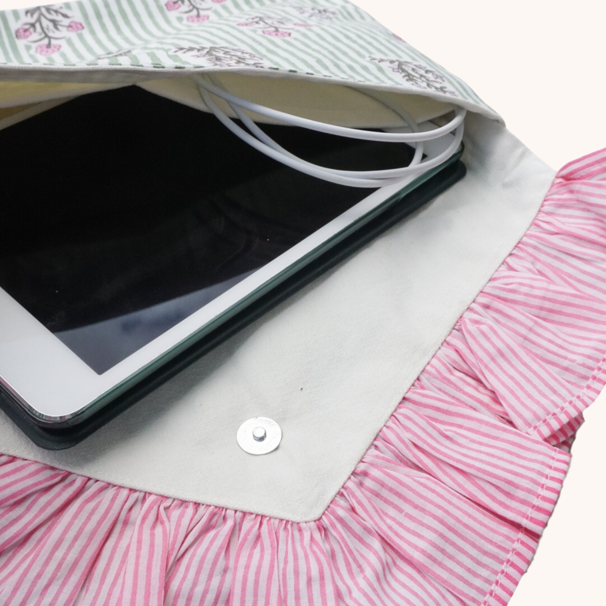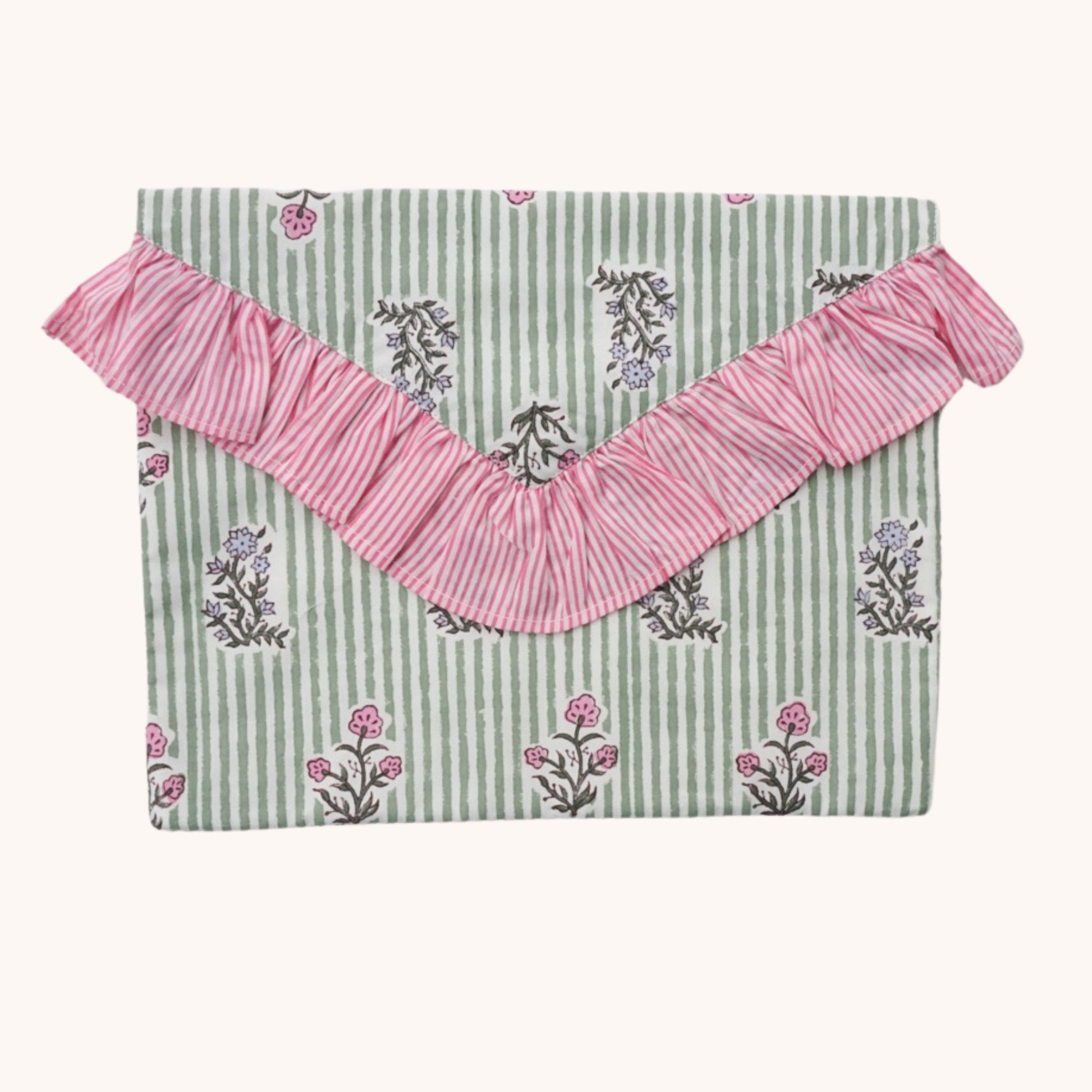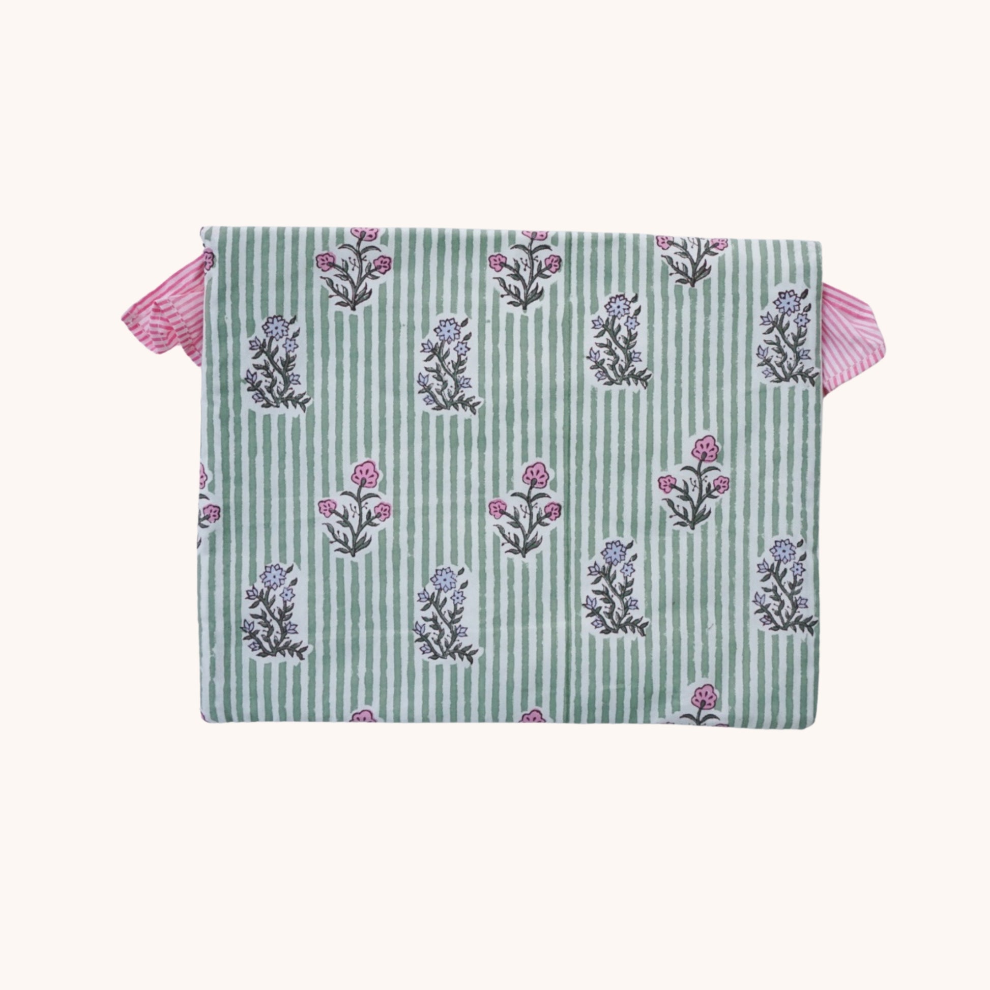 Each clutch is hand block-printed by skilled artisans using our hand-drawn patterns, so every piece is slightly unique. Crafted from natural cotton and fully lined with three separate compartments, it keeps your essentials organised while looking effortlessly chic.