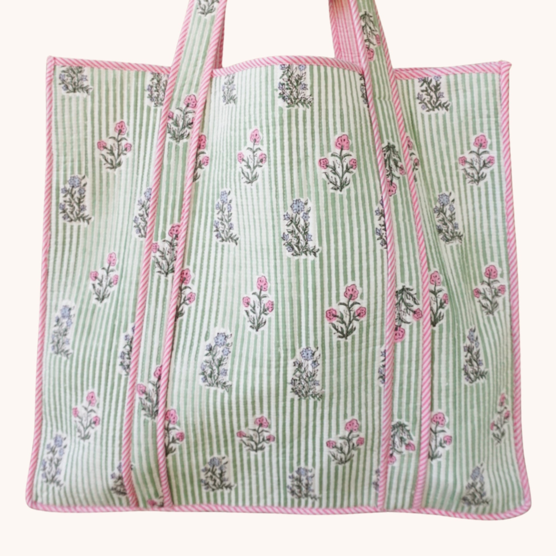 Each tote is block-printed by skilled artisans in our hand drawn design, making every piece slightly unique. Crafted from durable heavyweight cotton canvas and fully lined with a handy interior pocket, it’s both practical and beautiful.
