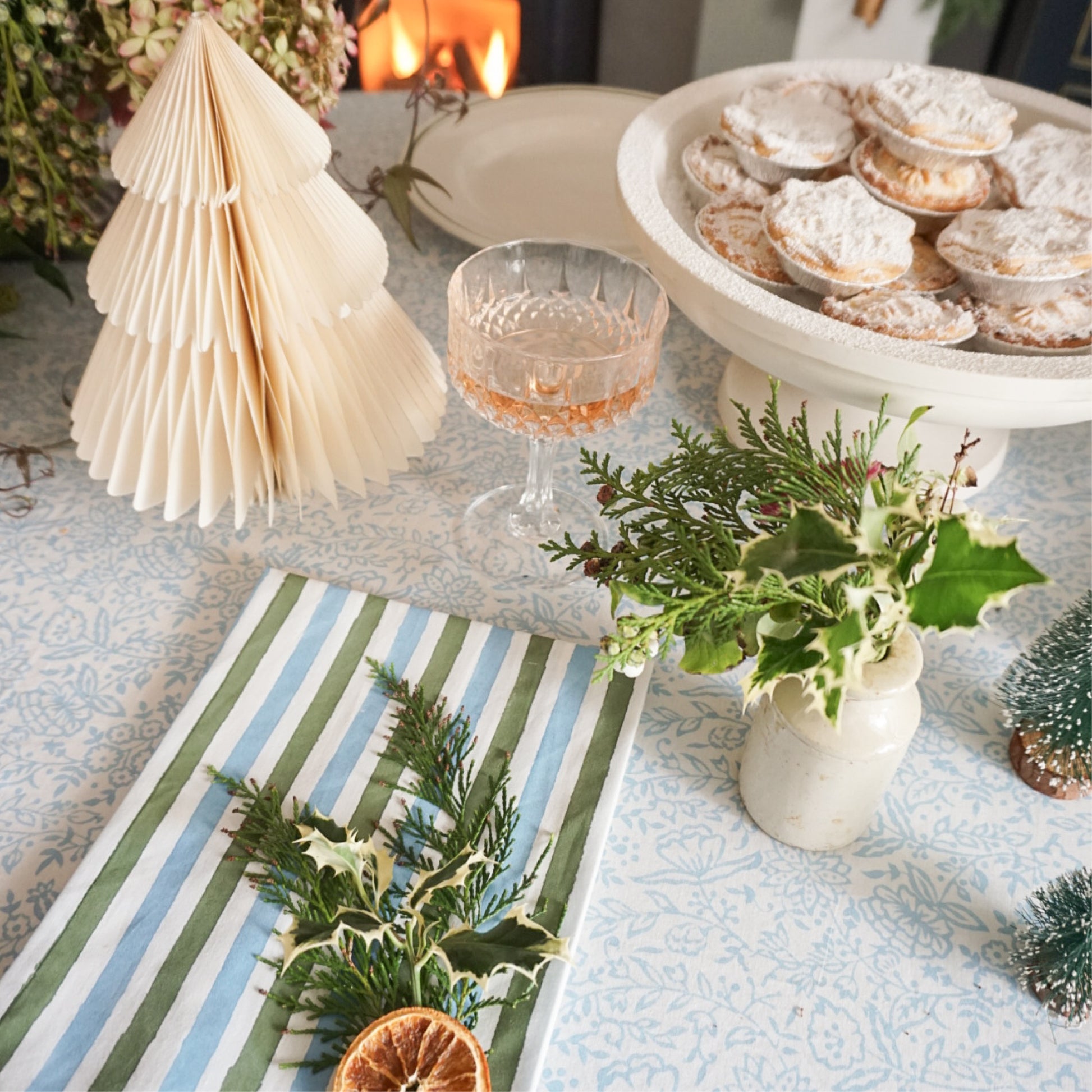 Introducing our brand new double stripe napkins in blue and green. Hand-printed by skilled artisans in Jaipur, using traditional block printing techniques. Works perfectly for Christmas tables centred around a blue and green colour palette.