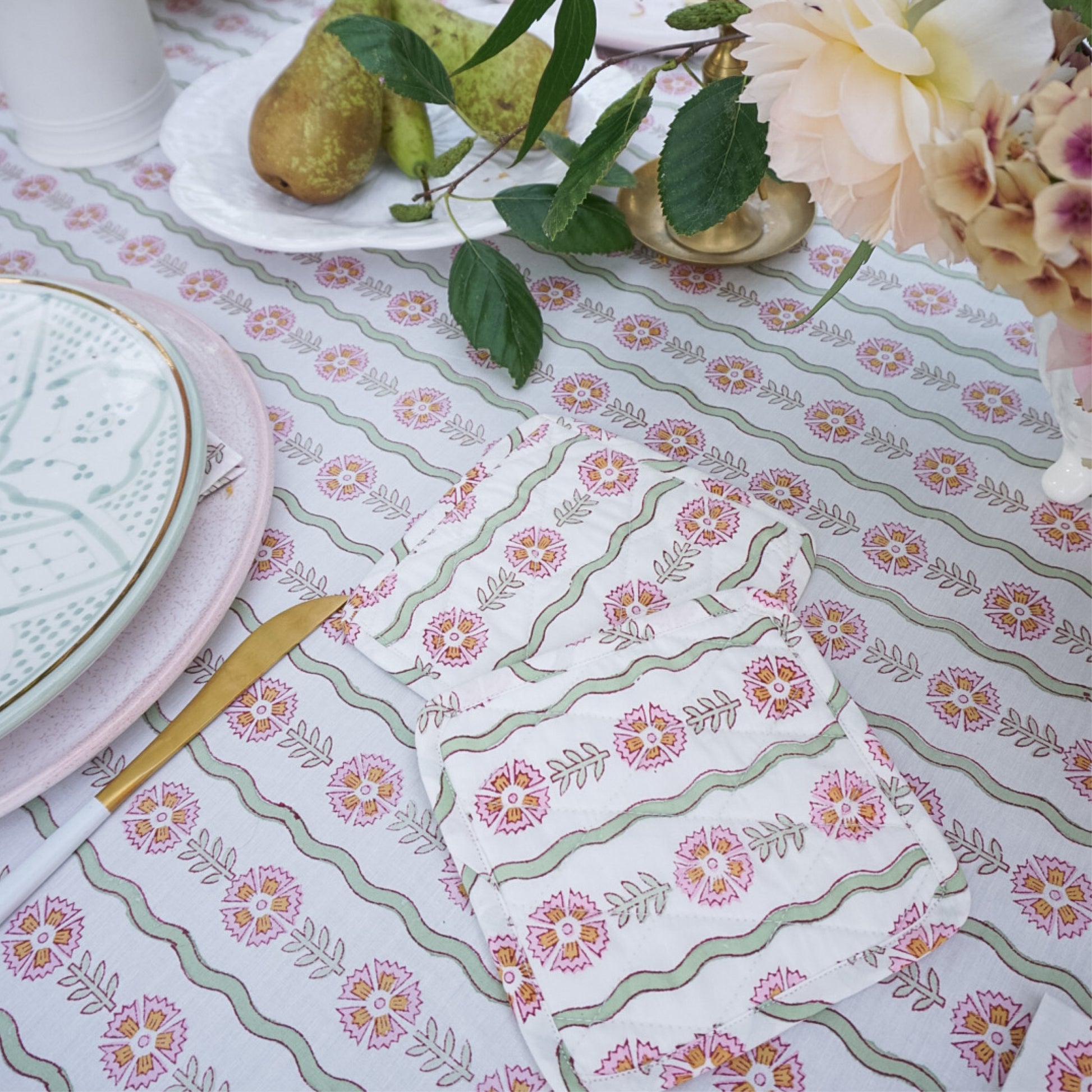 // We have a no waste policy on the fabric that we print, our offcuts are repurposed into smaller items such as our coasters or used as trim for other items such as napkins //