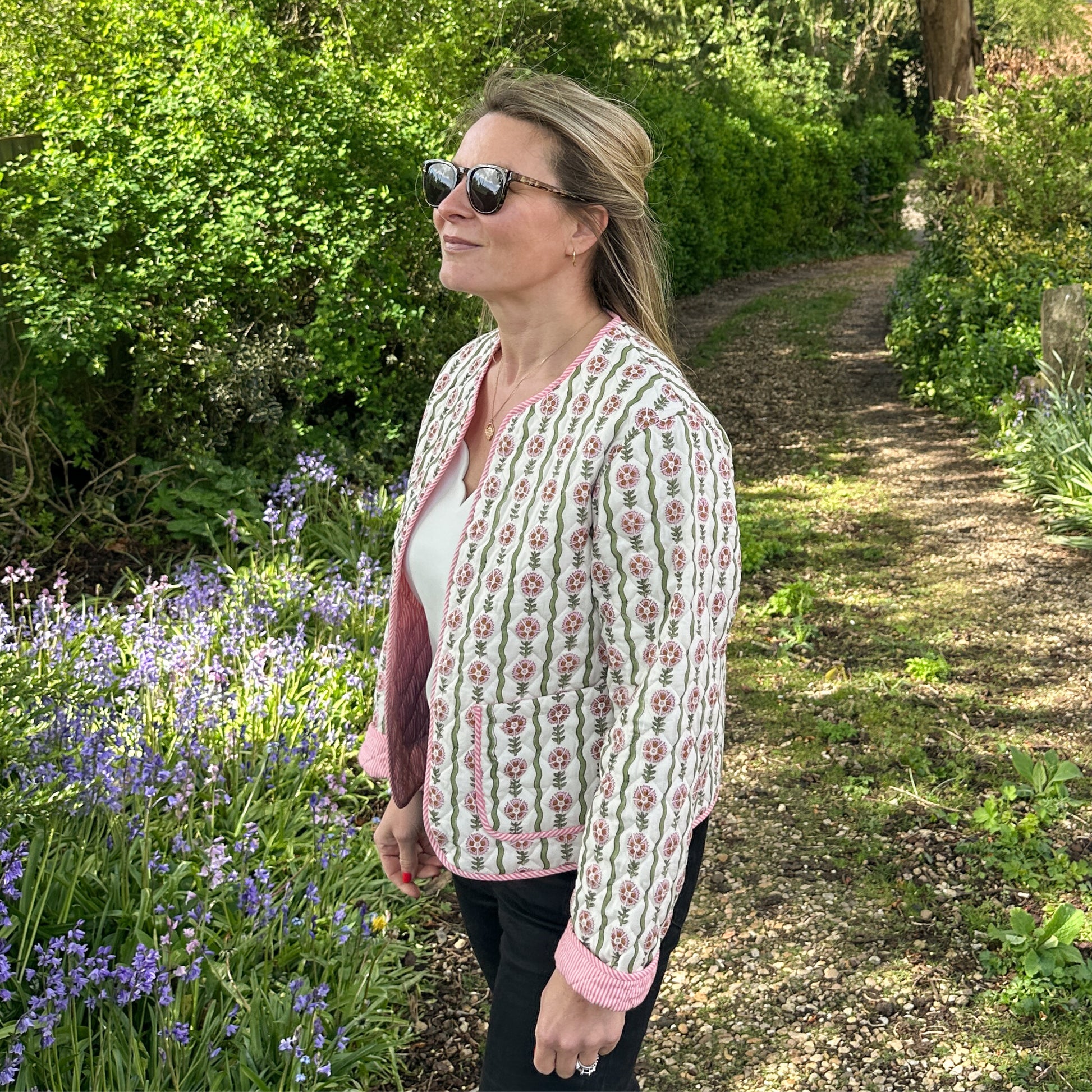 Lightly quilted for ease and structure, it is designed for a relaxed silhouette that layers comfortably over everyday pieces from denim to dresses.