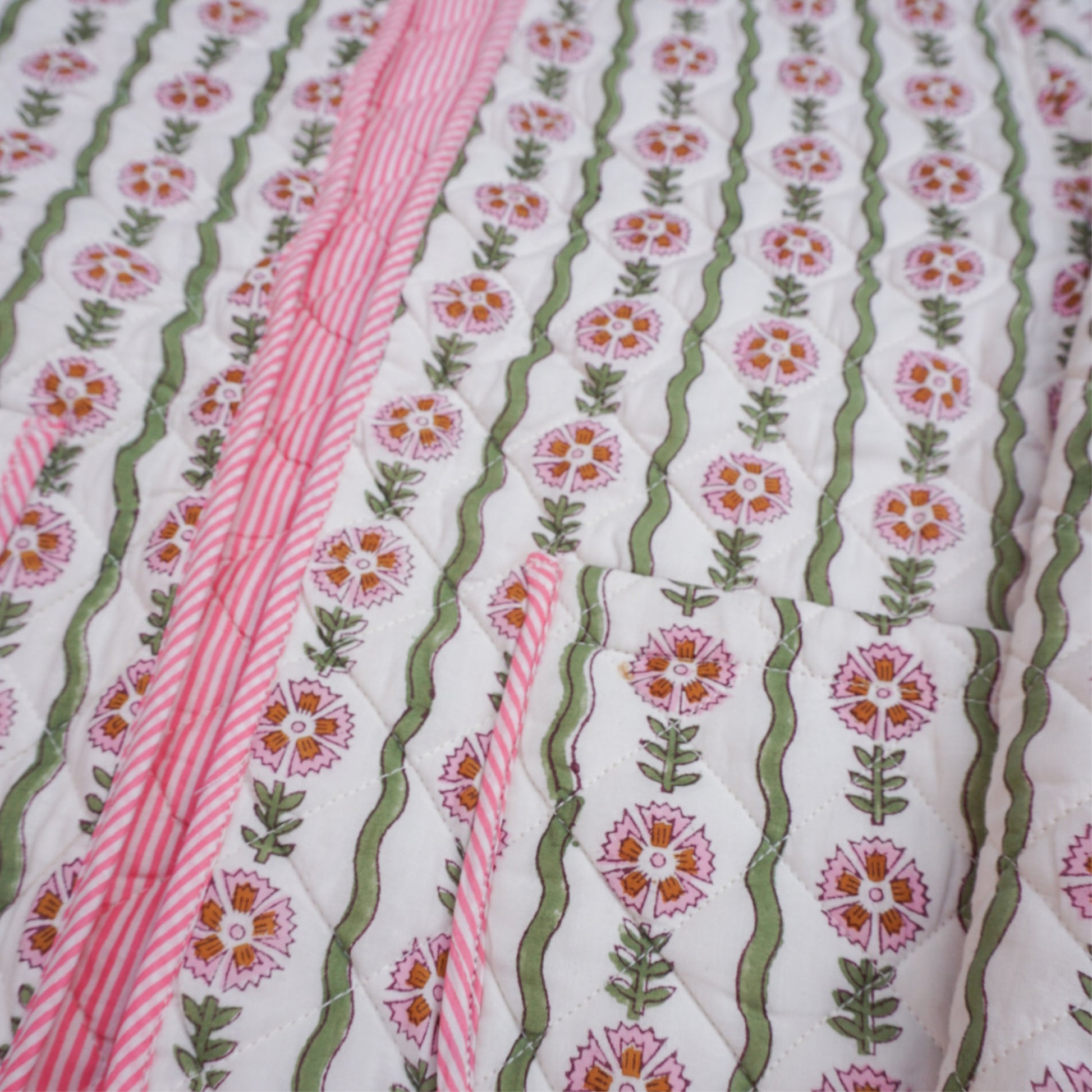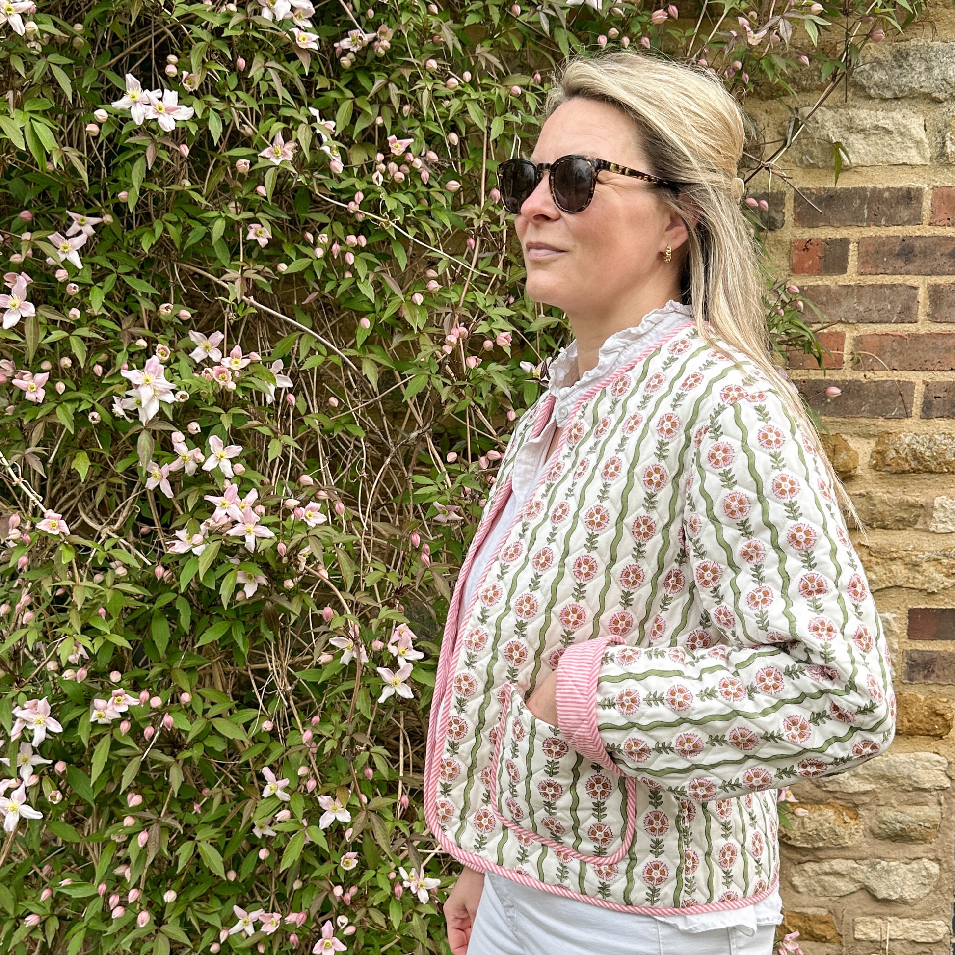 The fabric is block printed on 100% cotton by hand in Jaipur using traditional techniques, before being made into the final piece.