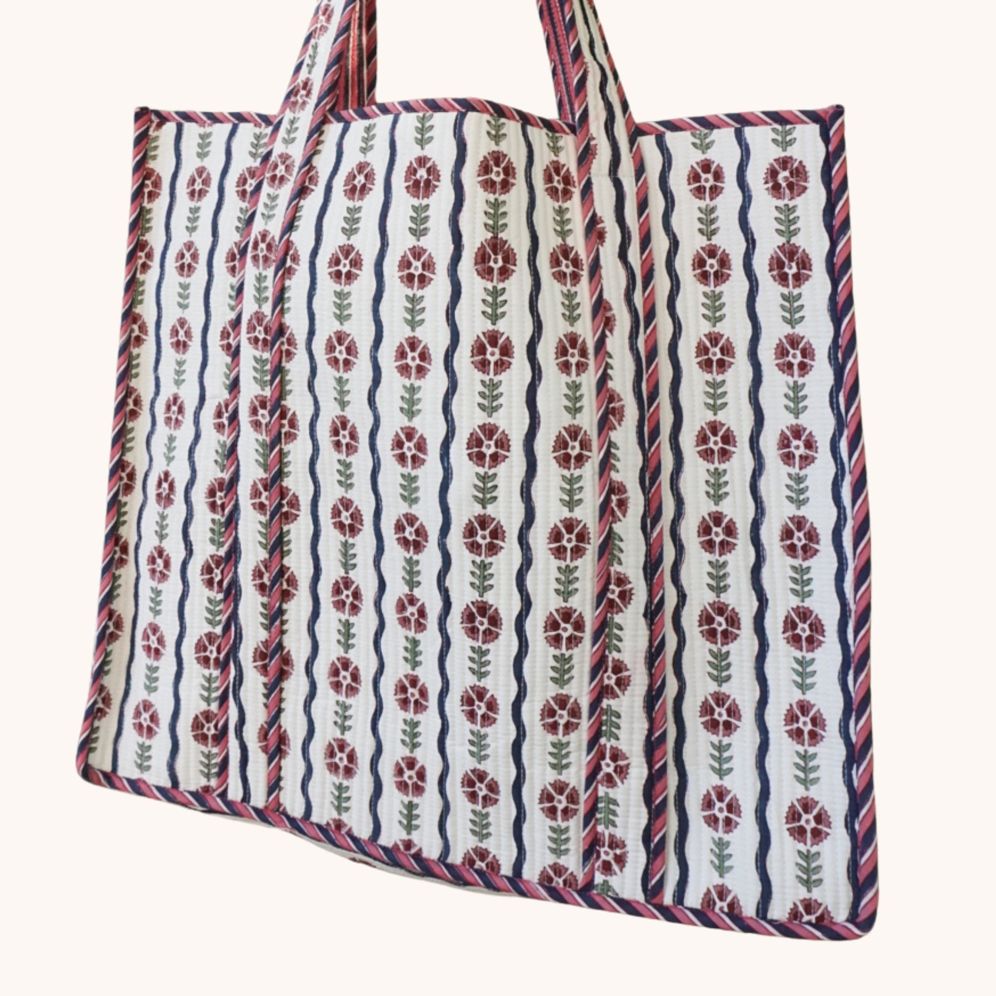 Each tote is block-printed by skilled artisans in our hand drawn design, making every piece slightly unique. Crafted from durable heavyweight cotton canvas and fully lined with a handy interior pocket, it’s both practical and beautiful.